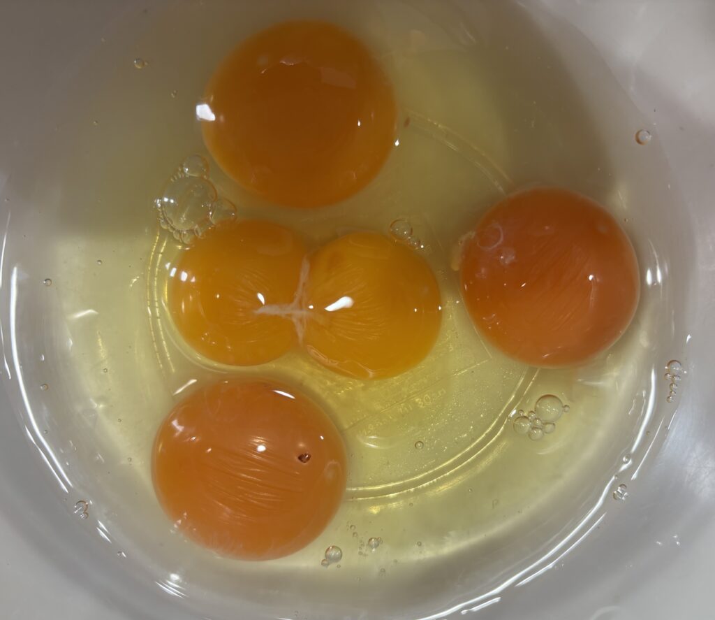 調べてみると、双子の卵は若い鶏が産むことが多く、確率的にはかなり珍しいそうです🤗