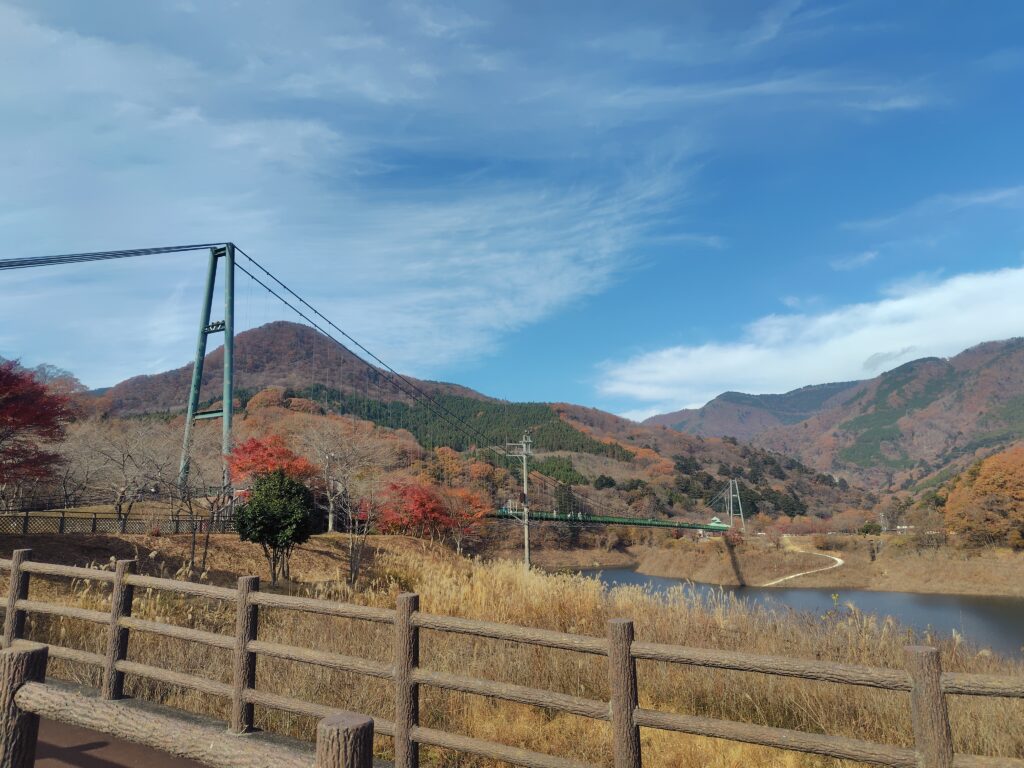 無補剛桁歩道吊橋として本州最大級の長さを誇る吊橋が有名です。