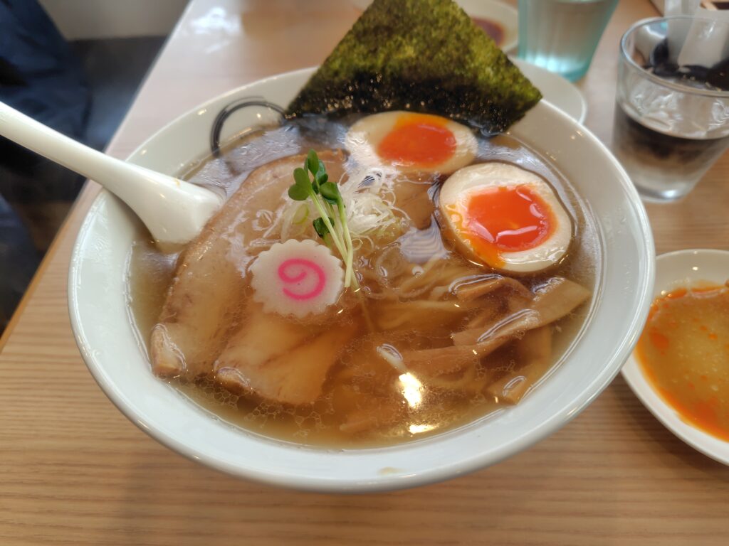 鶏ガラなどのあっさり醤油スープと手打ちの縮れ麺が特徴です。