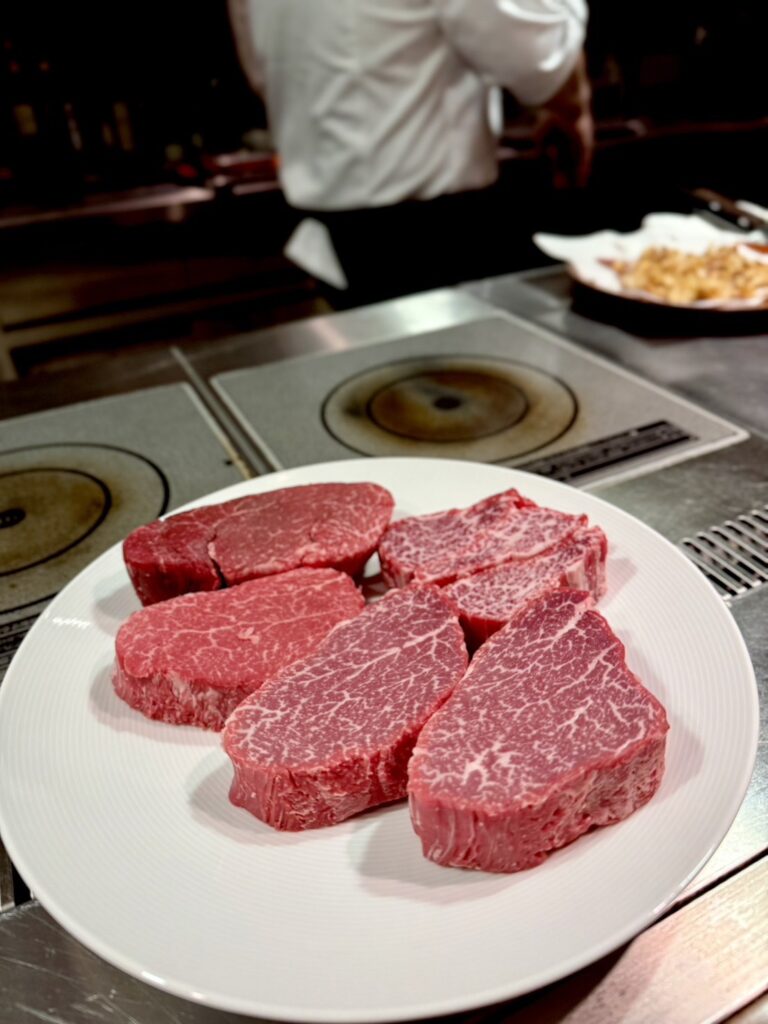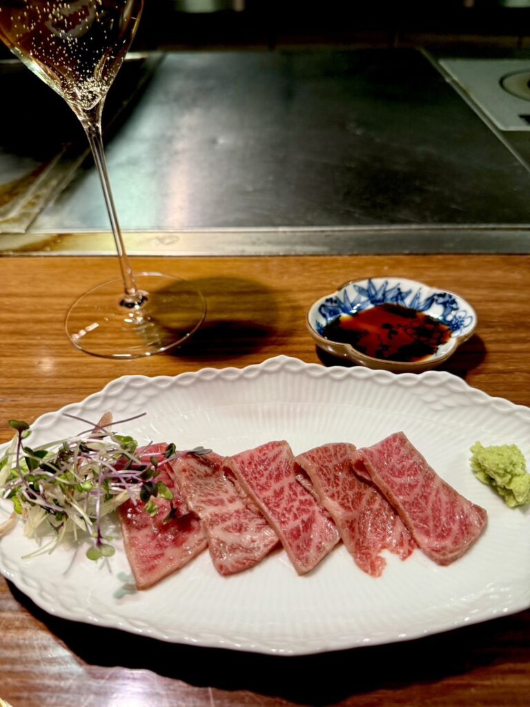 刺身やガチョウの肝臓やら出てきて